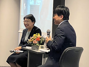 第2部では、上智大学教育学科の卒業生である須藤玲氏(東京大学大学院教育学研究科附属 学校教育高度化・効果検証センター 助教)を迎え、杉村学長との対談が行われました。
